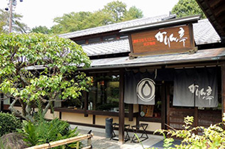 満濃池の堤防すぐ横にあるかりん亭では、満濃池の美しい姿を眺めながら、本格的な讃岐手打ちうどんを食べることができます。特に健康野菜「ヤーコン」を使ったヤーコンうどんが名物です。また亭内では、特産品のかりん飴などのかりん製品も販売されております。